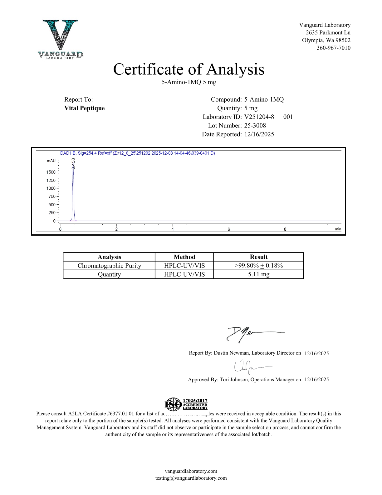 Please be aware that all peptides at Vital Peptique are meant ONLY for research purposes. They should not be used for any other purpose. Please familiarize yourself with our Terms and Conditions before ordering. Vital Peptique cares about transparency above all. Buy 5 Amino 1MQ from Vital Peptique now!