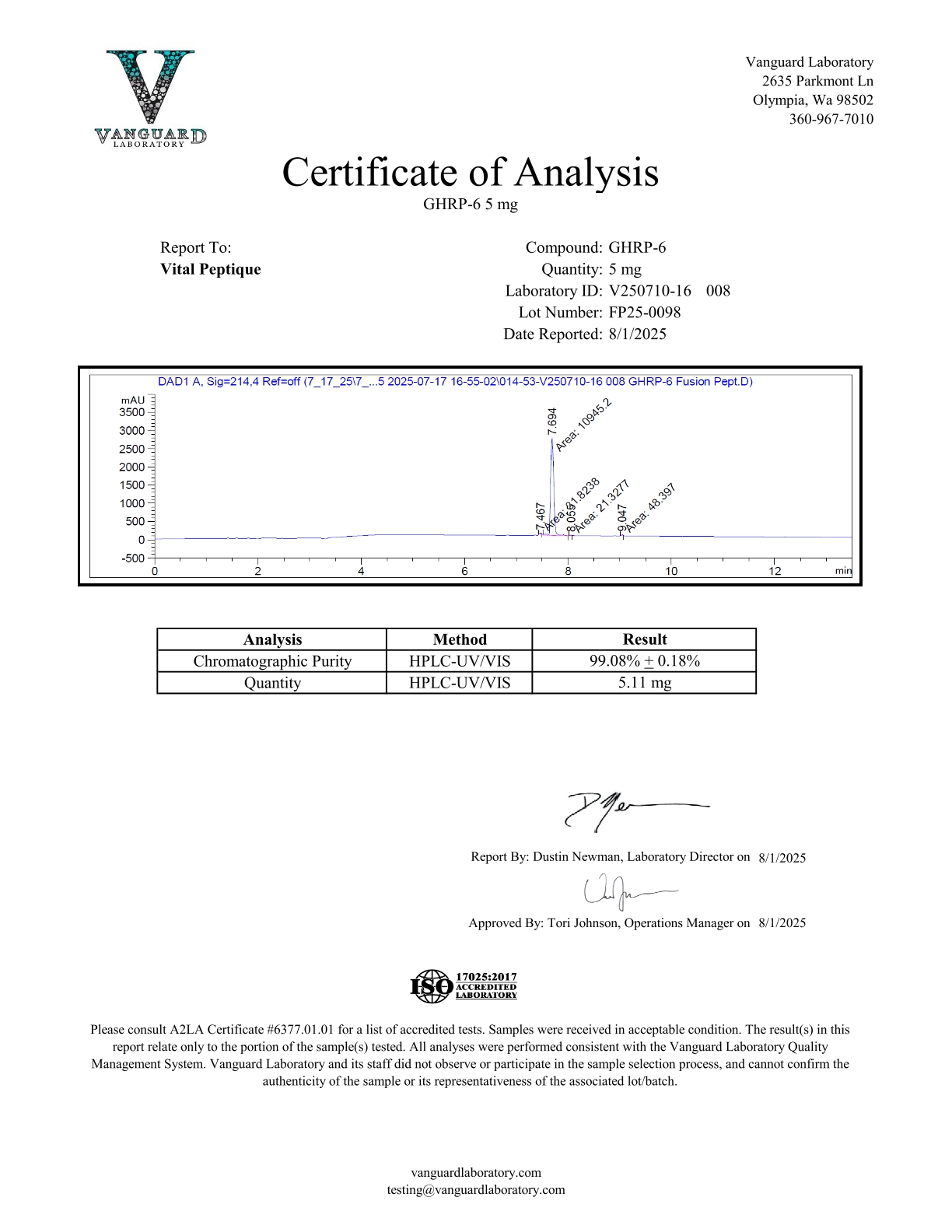 Please be aware that all peptides at Vital Peptique are meant ONLY for research purposes. They should not be used for any other purpose. Please familiarize yourself with our Terms and Conditions before ordering. Vital Peptique cares about transparency above all. Buy GHRP-6 from Vital Peptique now!