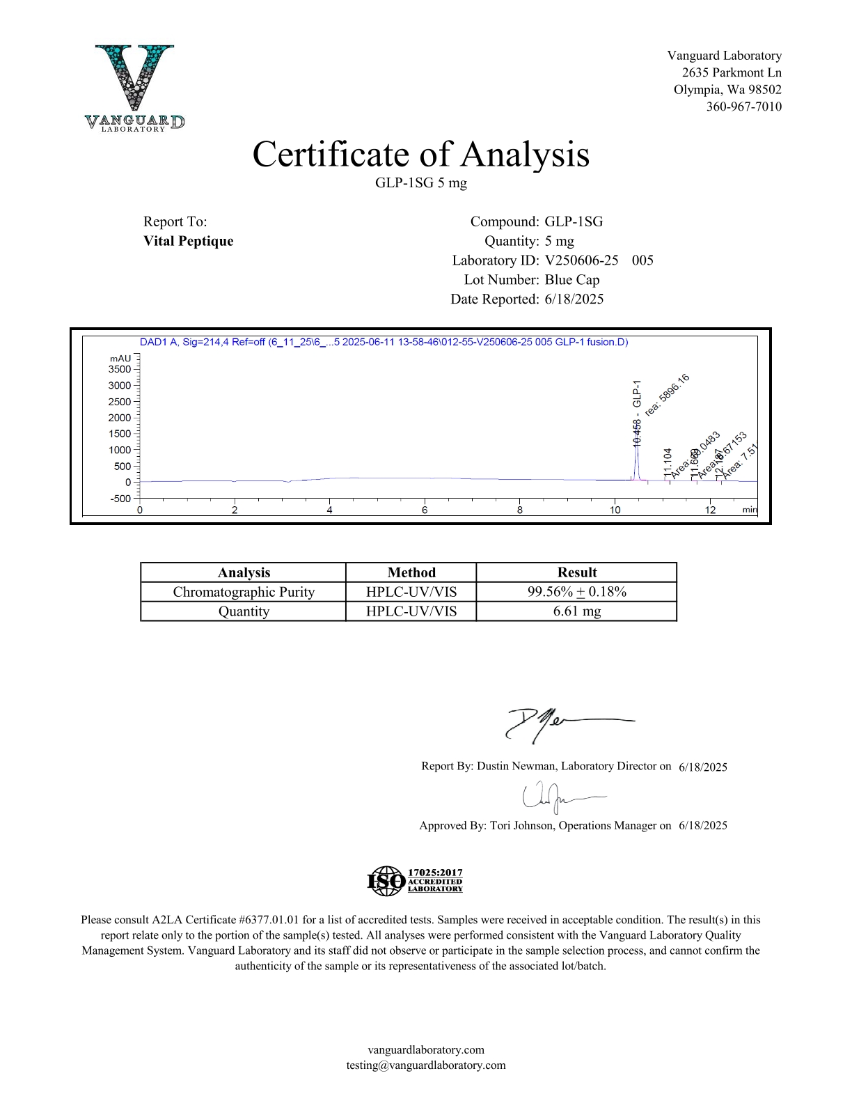 Moreover, every vial of GLP-1Â peptide will come with a safety-sealed top (NOTE – the cap colors may vary depending on the formula). Finally, the rubber stopper will be exposed once the top is freed from the lid. Vital Peptique cares about the most accurate result of your research which is why we never compromise with the quality of our peptides.