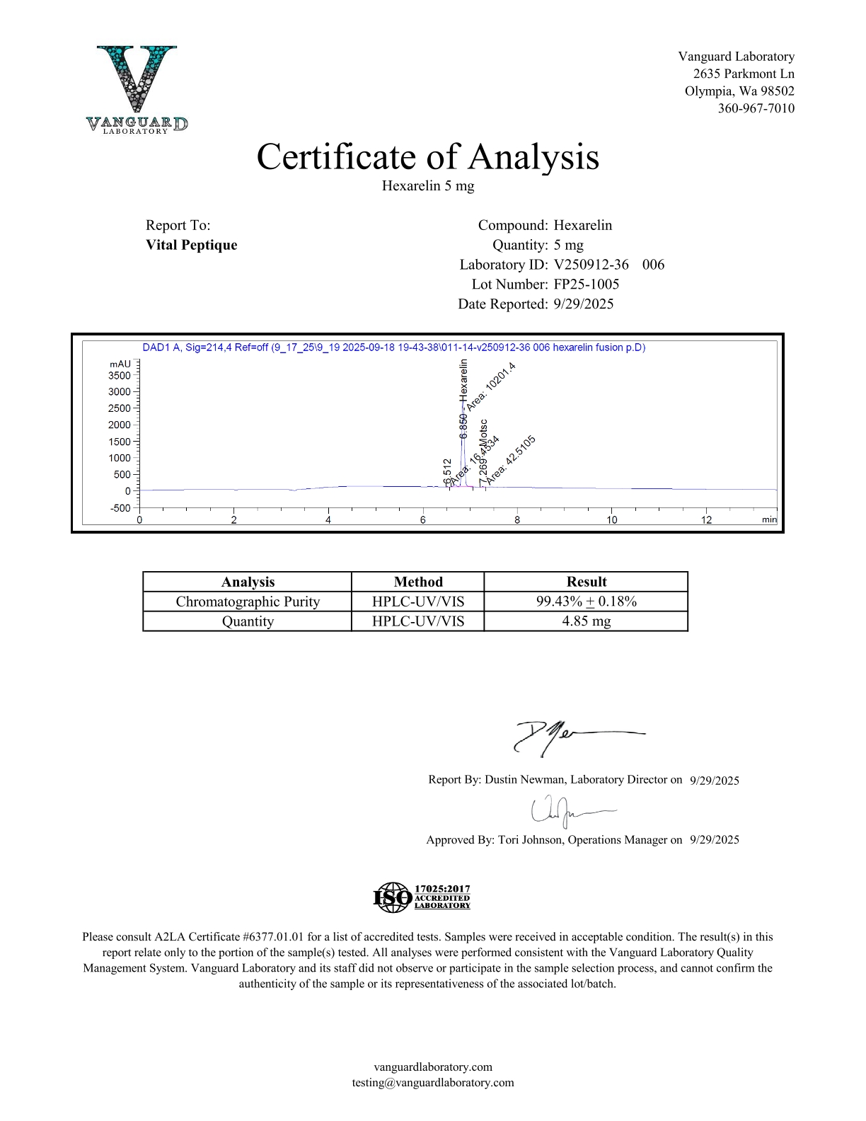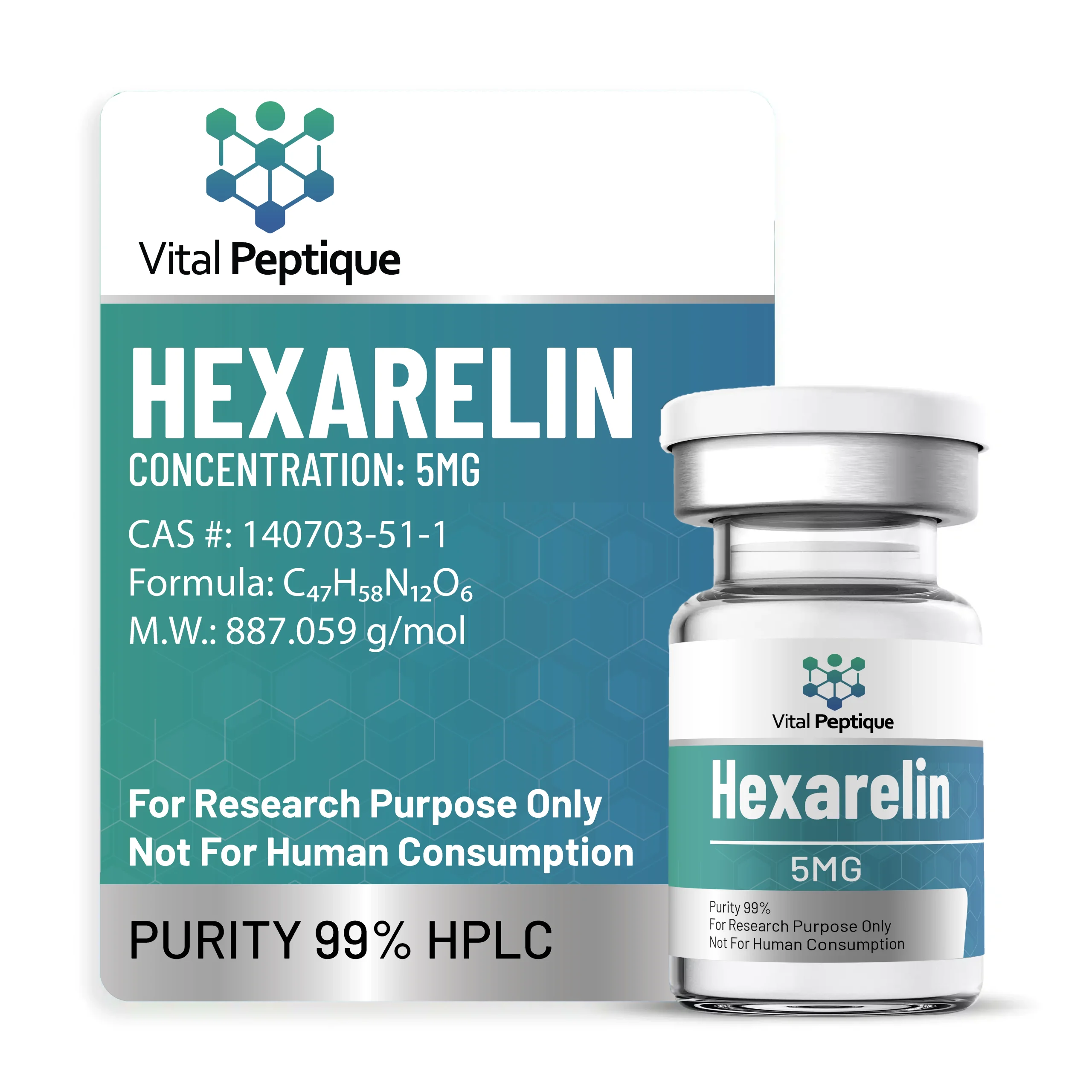 Please be aware that all peptides at Vital Peptique are meant ONLY for research purposes. They should not be used for any other purpose. Please familiarize yourself with our Terms and Conditions before ordering. Vital Peptique cares about transparency above all. Buy Hexarelin from Vital Peptique now!