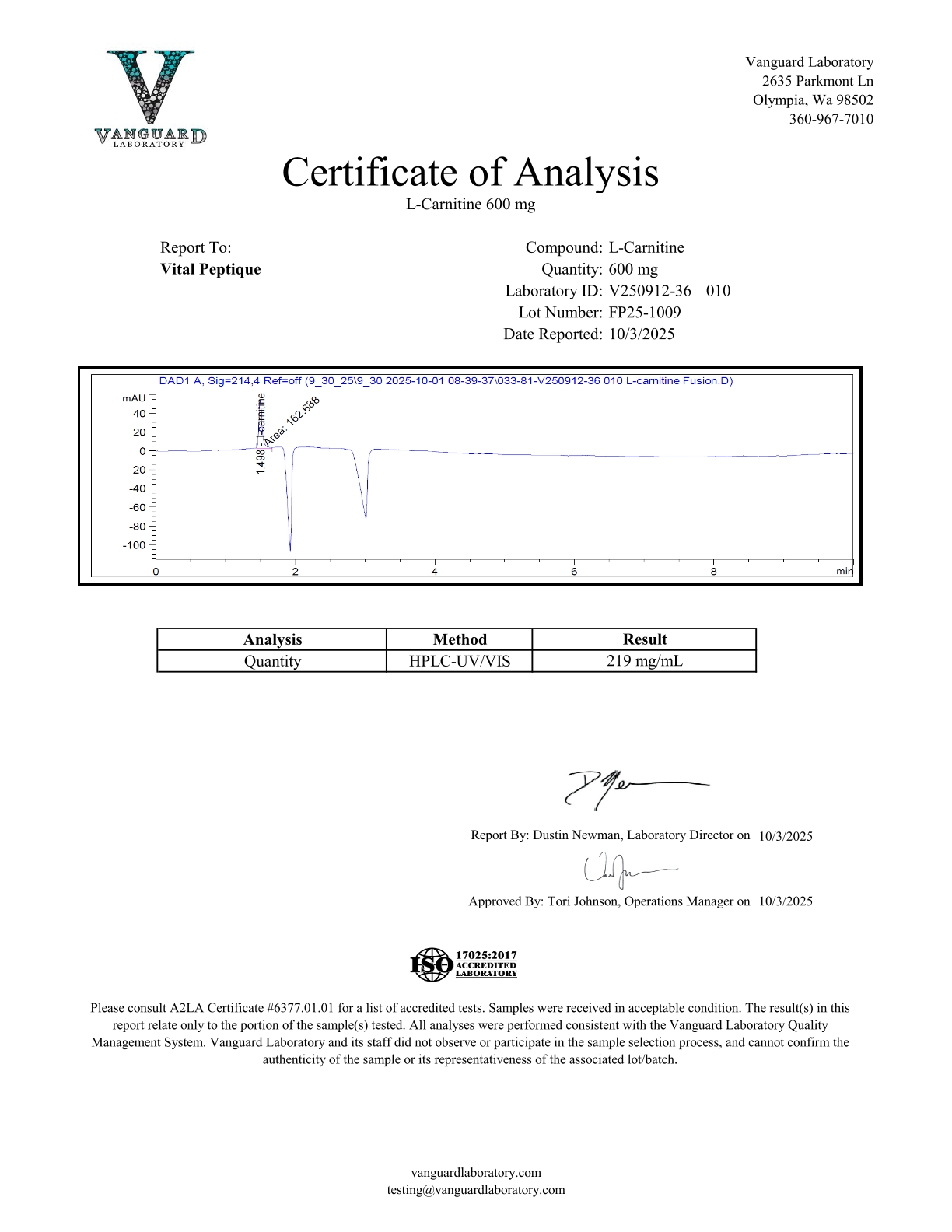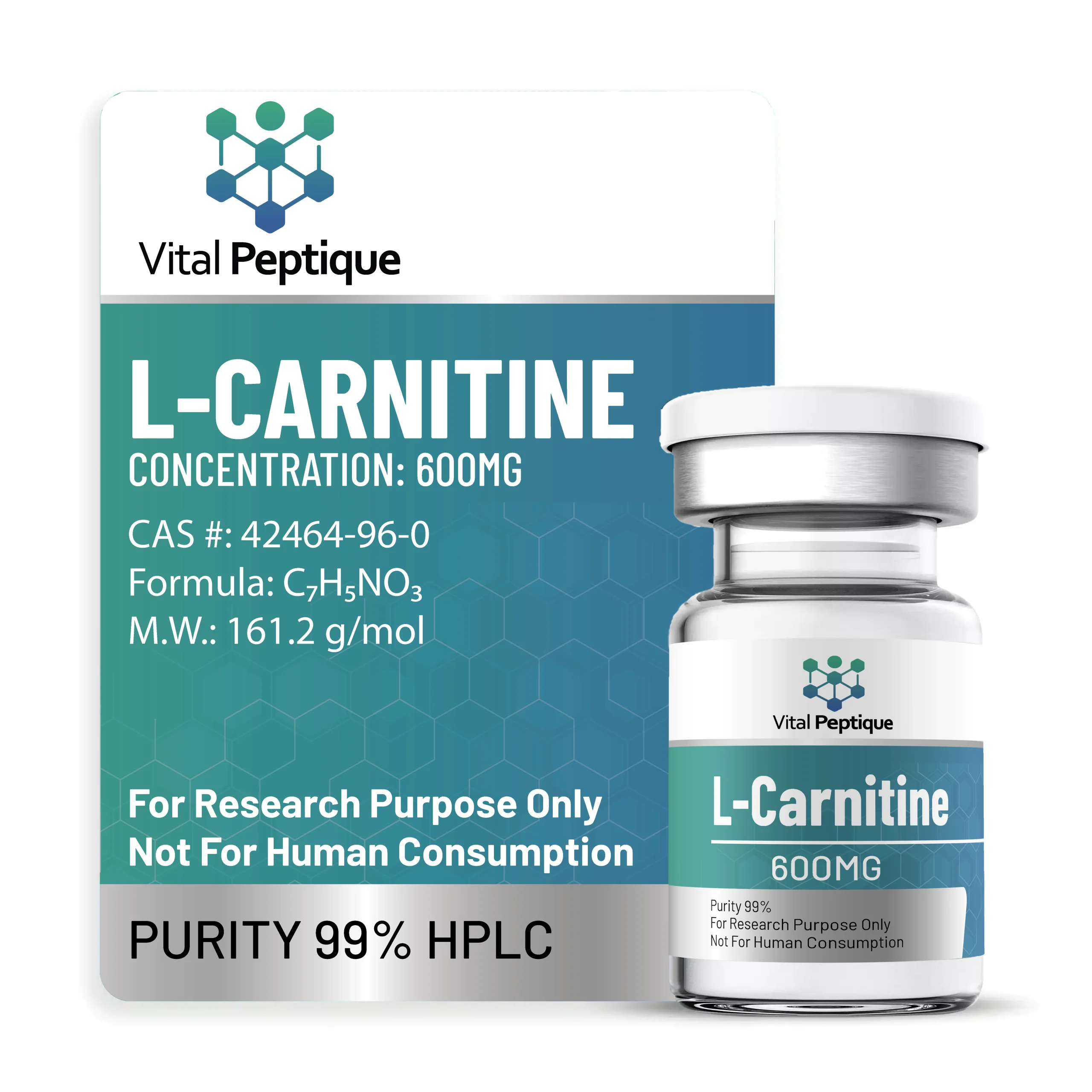 At Vital Peptique, each batch of L-Carnitine is carefully reviewed to ensure proper color, vial integrity, and consistent presentation. The compound is supplied as a liquid state within a 10 mL vial, sealed to preserve material integrity from the point of laboratory packaging.
