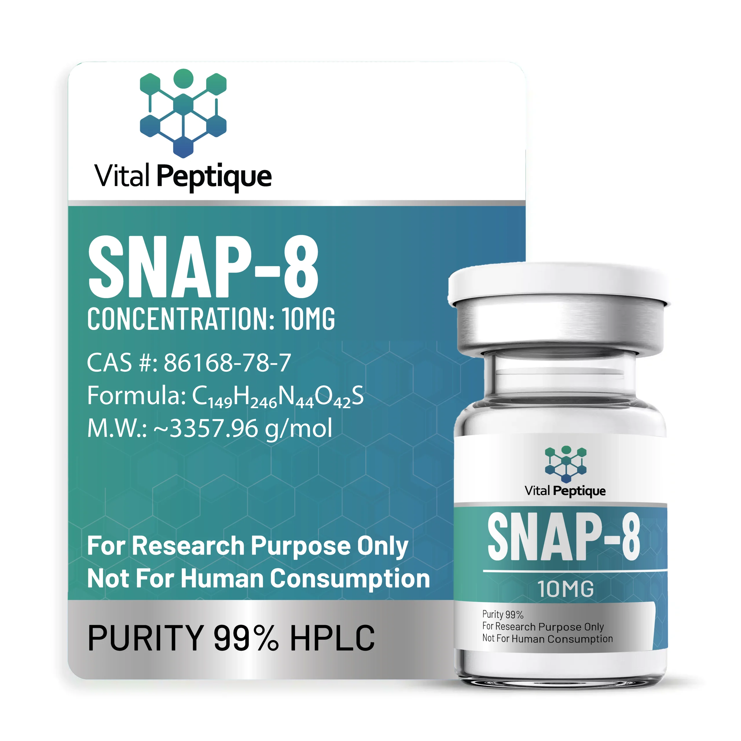 Please be aware that all peptides at Vital Peptique are meant ONLY for research purposes. They should not be used for any other purpose. Please familiarize yourself with our Terms and Conditions before ordering. Vital Peptique cares about transparency above all. Buy SNAP-8 from Vital Peptique now!